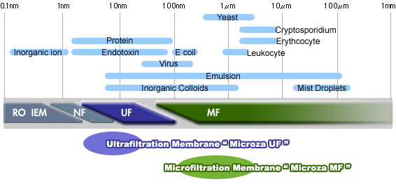 在下图中,显示了与可以采用的膜分离方法的孔径大致对应的变体物质的实例。