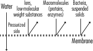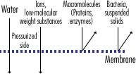 当对浓缩溶液施加液压(更大且与渗透压相反)时,水分子将通过膜到更稀溶液侧。该方法能够将水与离子和低分子量有机成分分离。